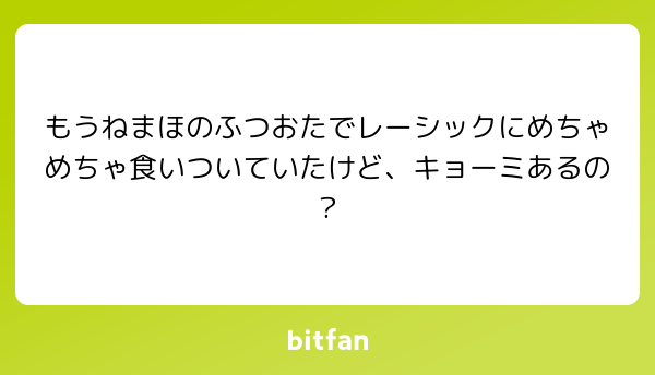 質問 めたら 2026/03/25 16:17 Bitfan IDでログイン パスワードを忘れた方はこちら ログインできない場合 ログインしたままにする または Xでログイン Facebookでログイン Bitfan IDとは Bitfan IDを未登録の方 Bitfan IDとは何ですか Bitfan IDは本サービスを利用するために必要なアカウントとなっております。 外部SNSアカウントを利用したご登録、または任意のメールアドレスとパスワードを利用したご登録ができます。 質問・リクエストを送る URLをコピーする 報告する